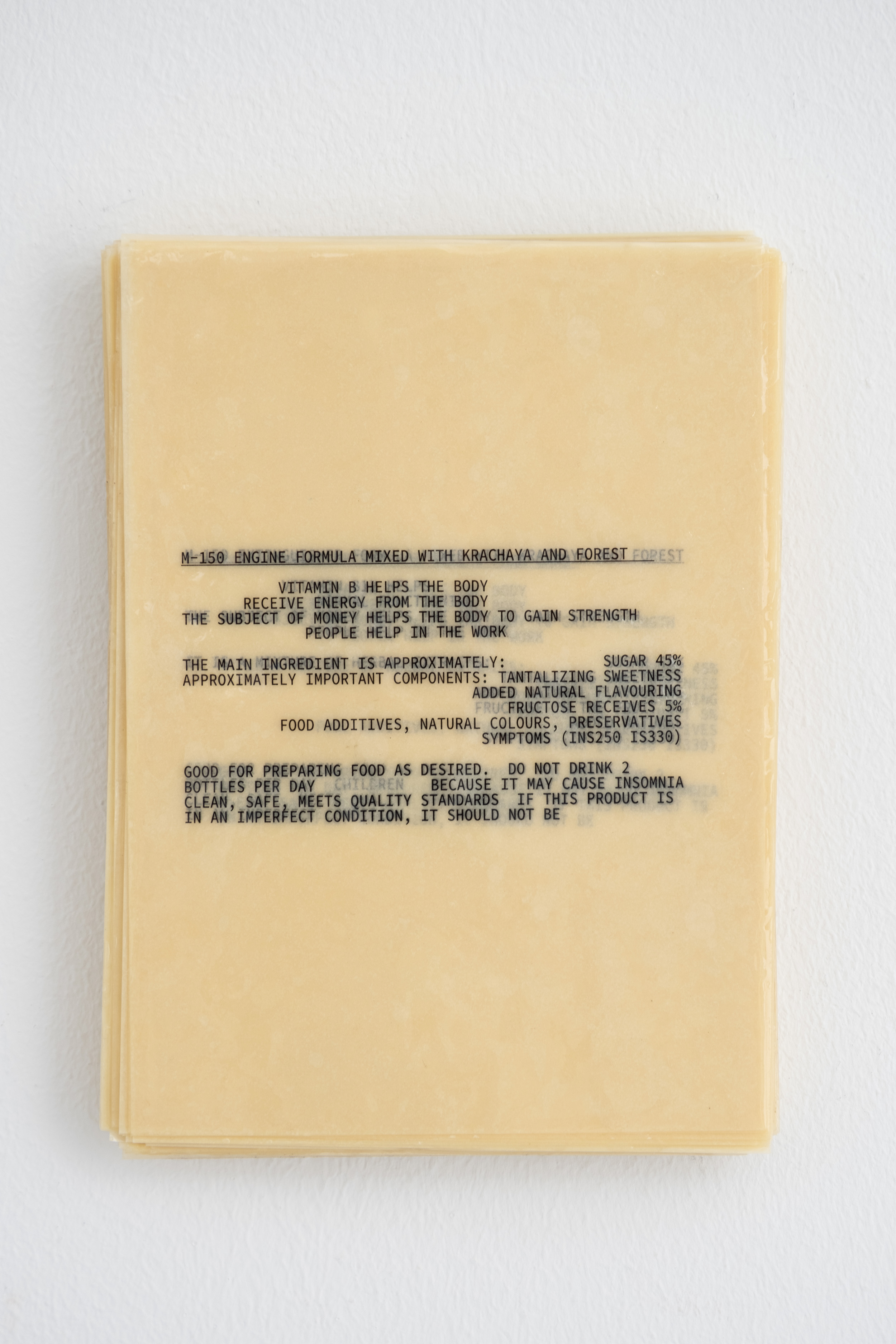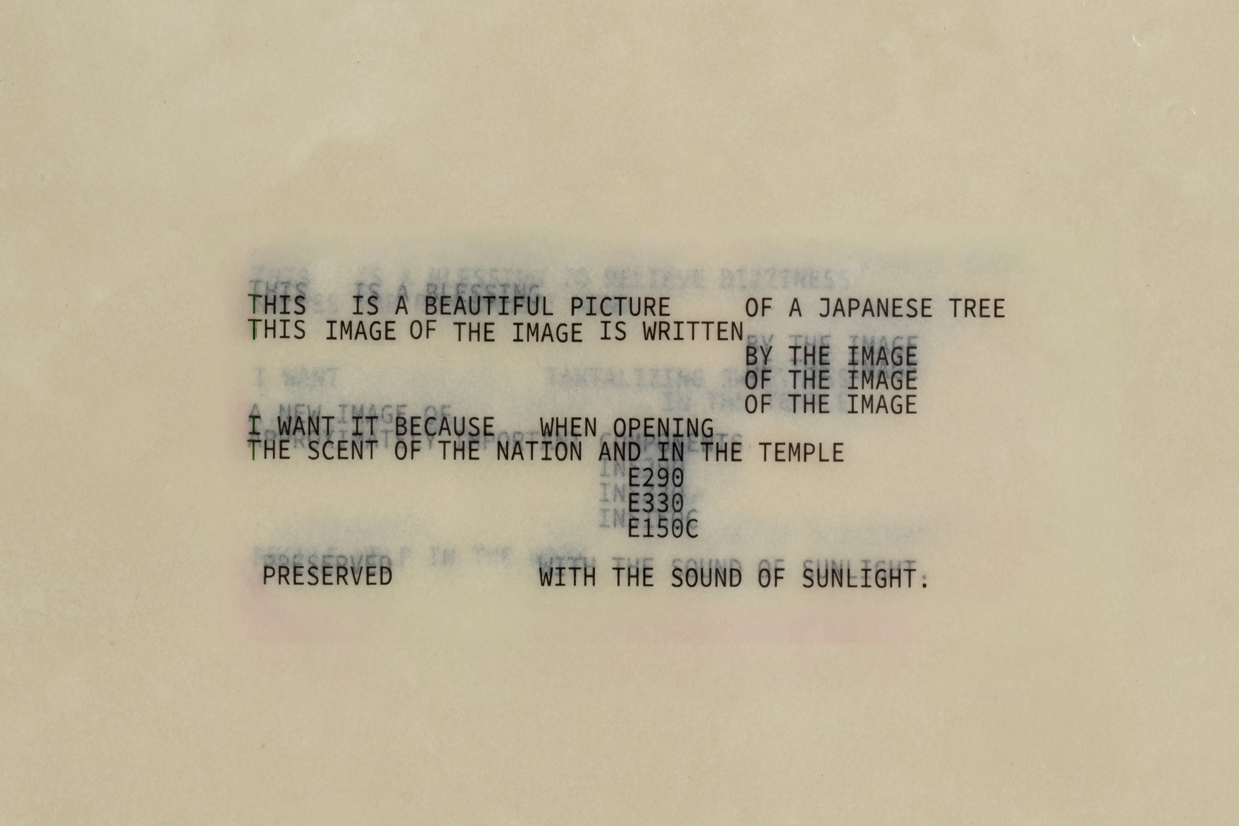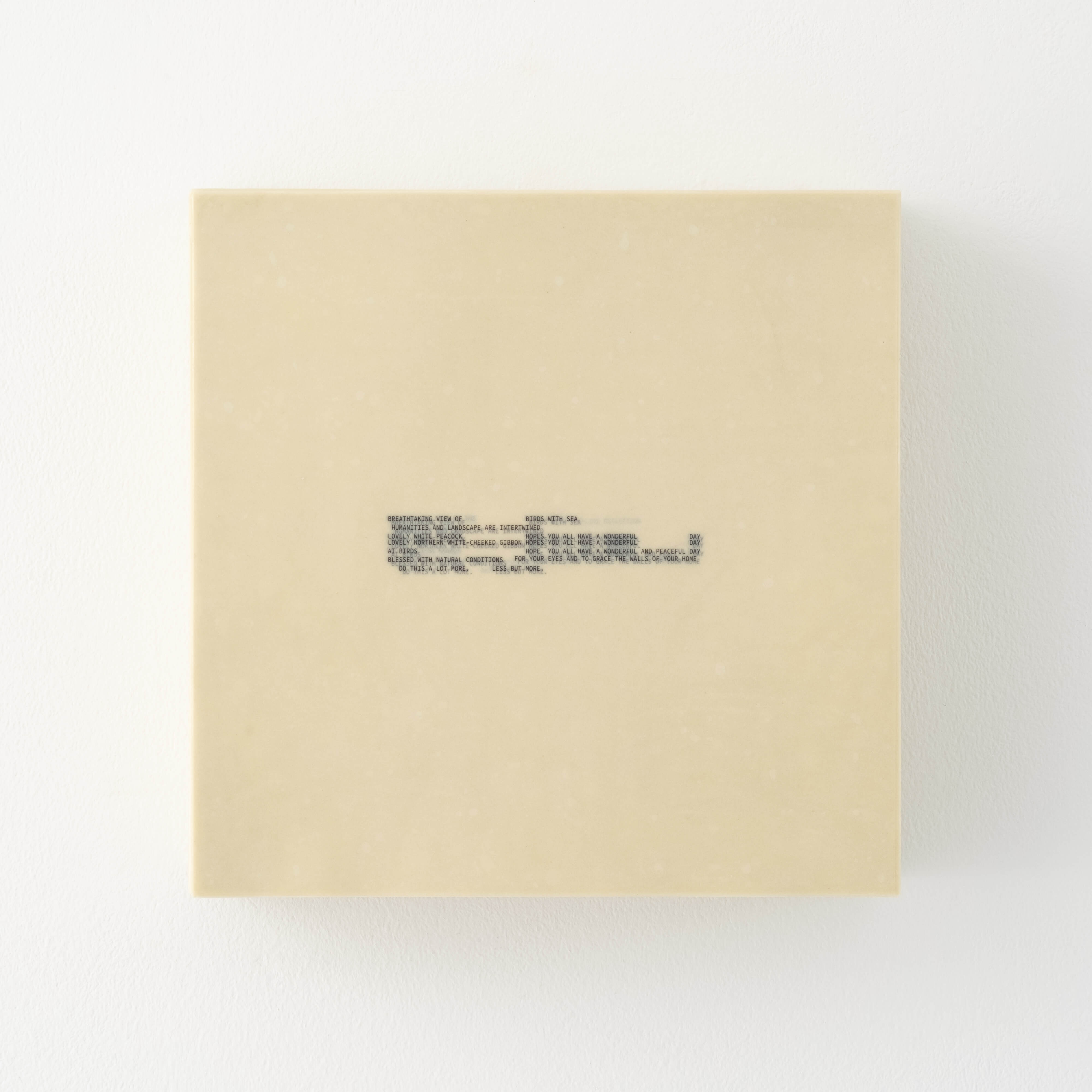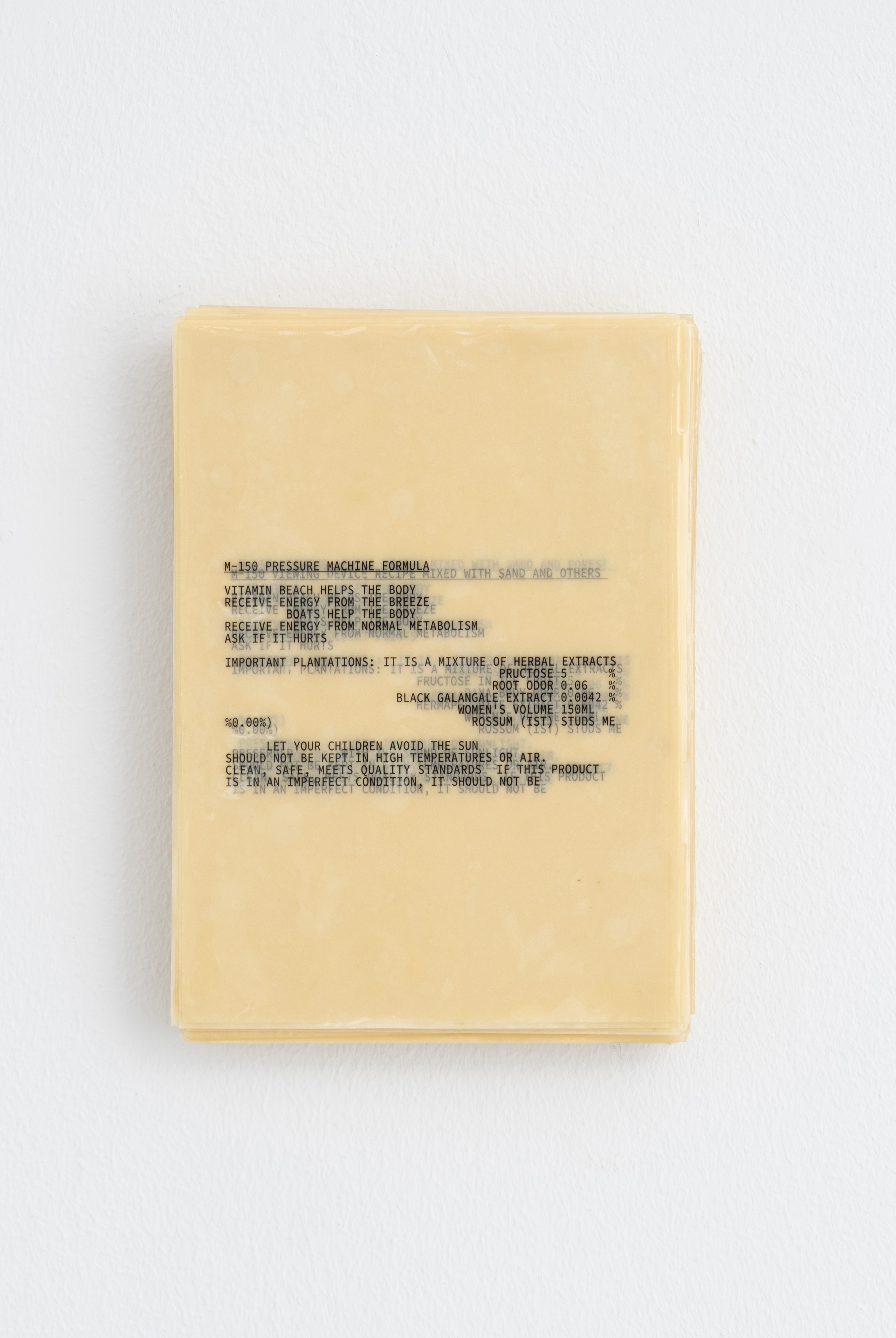 Clear packaging tape, ‘Survivor’ episode transcripts, digital print on paper